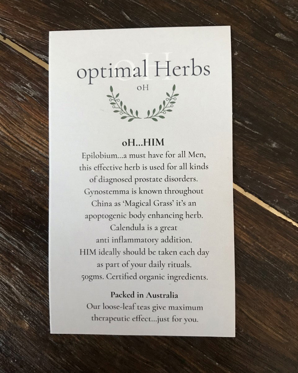 Epilobium is the key element in HIM, with its ability to be an effective aid for all diagnosed prostate disorders. With the added benefit of Gynostemma and Calendula, treat your HIM to a cup or 2 daily. All ingredients are Certified Organic.